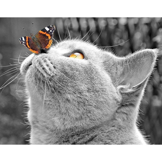 Butterfly on Nose Black Modern Wood Framed Art Print by Anonymous