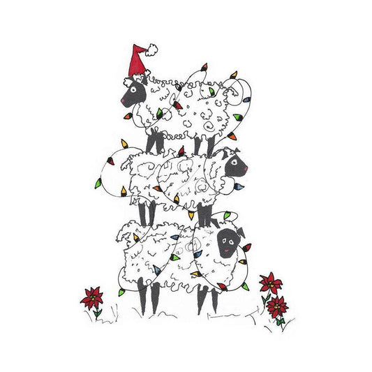 Stacked Sheep at Christmas Black Modern Wood Framed Art Print by Carroccio, Lisa