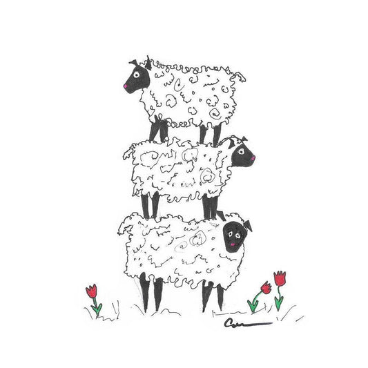 Stacked Sheep Black Modern Wood Framed Art Print by Carroccio, Lisa