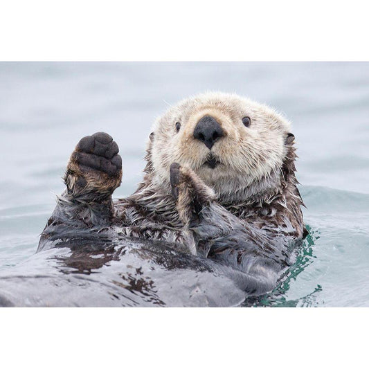 Yesterday I Caught A Fish Thiiis Big! - Otter. Alaska Black Modern Wood Framed Art Print by Golubenko, Roman