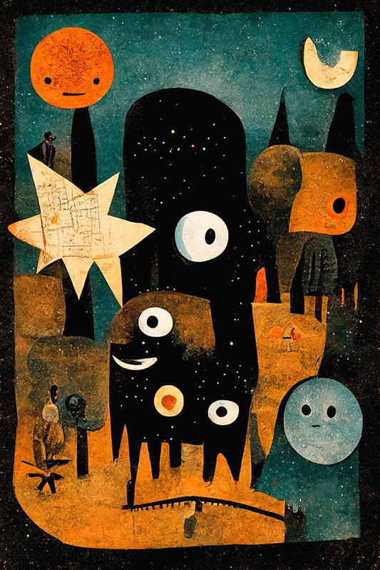 Night Of The Young Monsters Black Modern Wood Framed Art Print by Treechild