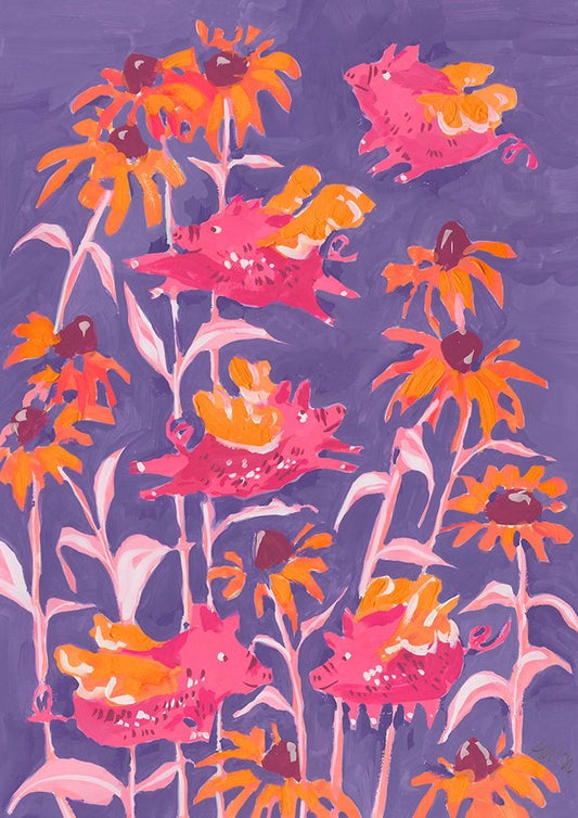Pink Flying Piglets Black Modern Wood Framed Art Print by Zwara, Ania