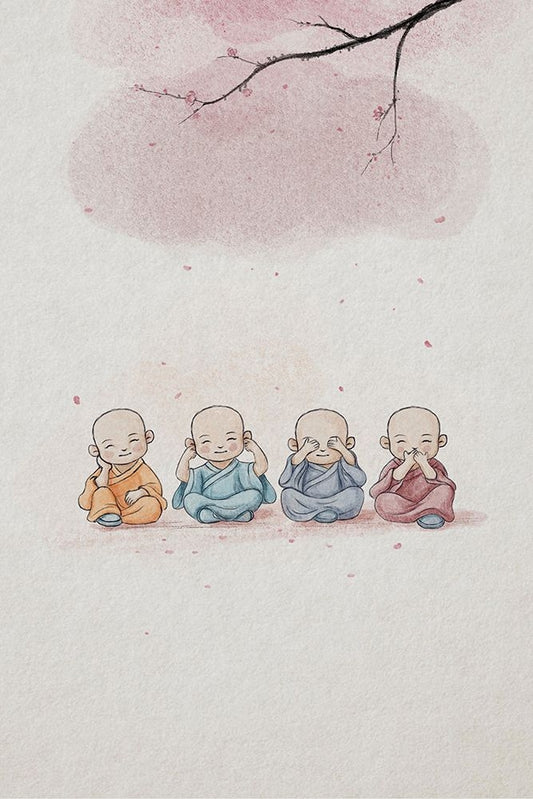 Cute Monks Black Modern Wood Framed Art Print by Thai, Xuan