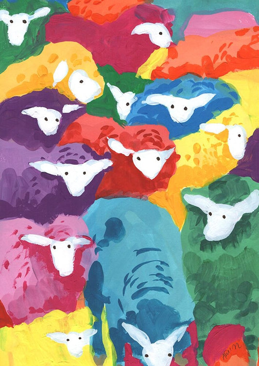 Colorful Sheep Cocktail Black Modern Wood Framed Art Print by Zwara, Ania