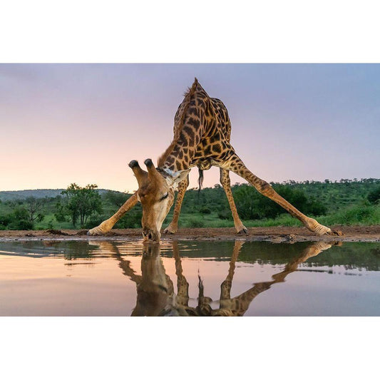 Sunset Giraffe Drinking Black Modern Wood Framed Art Print by Francoisventer