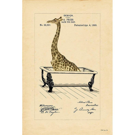 Giraffe in Tub Black Modern Wood Framed Art Print by Stellar Design Studio