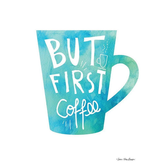 But First Coffee Black Modern Wood Framed Art Print by Seven Trees Design