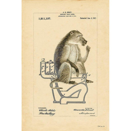 Monkey in Bowl Black Modern Wood Framed Art Print by Stellar Design Studio