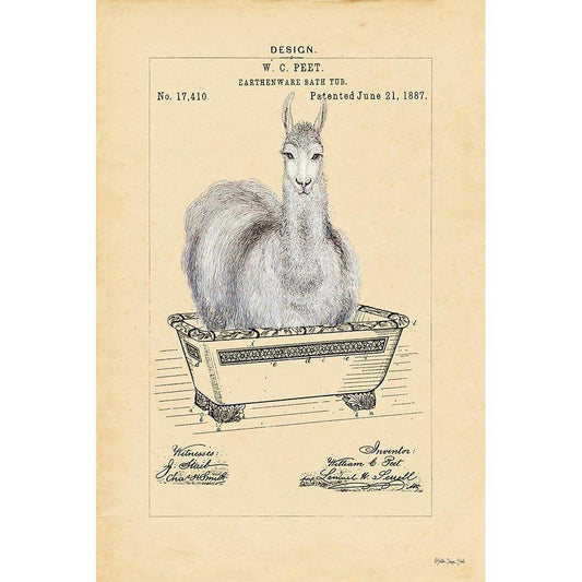 Llama in Tub Black Modern Wood Framed Art Print by Stellar Design Studio