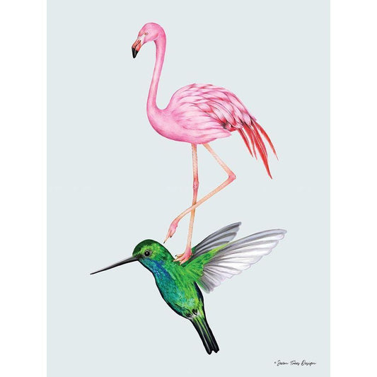The Hummingbird and the Flamingo Black Modern Wood Framed Art Print by Seven Trees Design