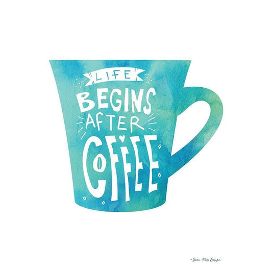 Life Begins After Coffee Black Modern Wood Framed Art Print by Seven Trees Design