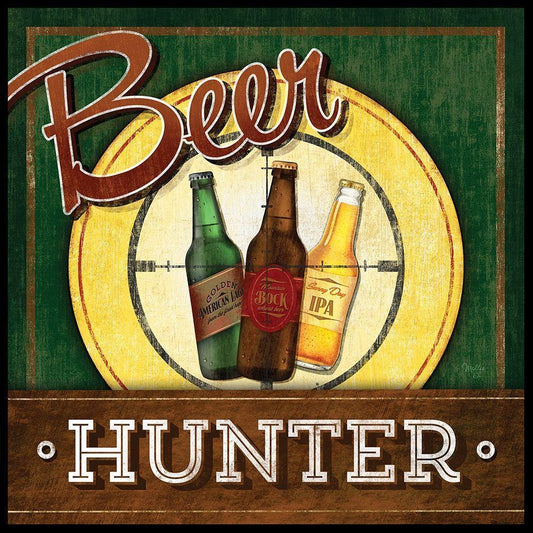 Beer Hunter Black Modern Wood Framed Art Print by Mollie B.