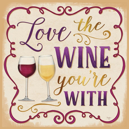 Love the Wine Youre With Black Modern Wood Framed Art Print by Mollie B.