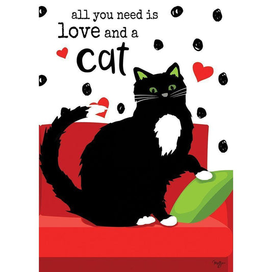 All You Need is Love and a Cat Black Modern Wood Framed Art Print by Mollie B.