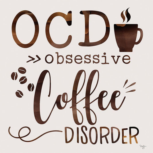Obsessive Coffee Disorder Black Modern Wood Framed Art Print by Mollie B.