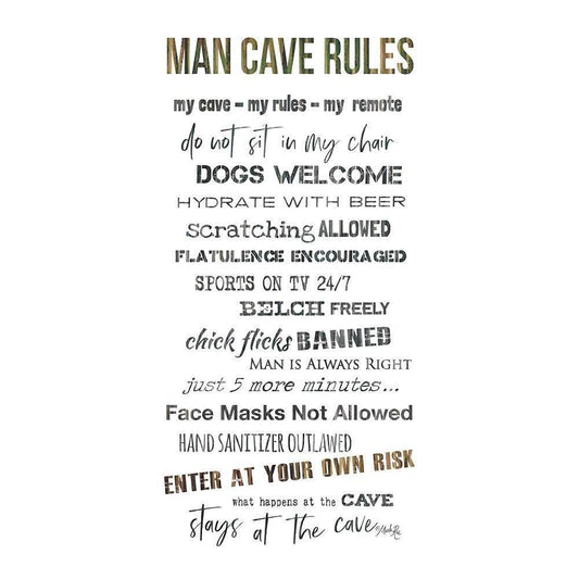 Man Cave Rules I Black Modern Wood Framed Art Print by Rae, Marla