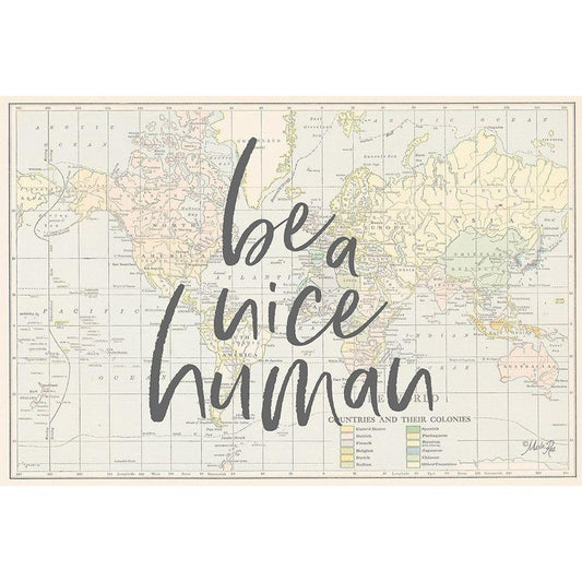 Be a Nice Human Map Black Modern Wood Framed Art Print by Rae, Marla