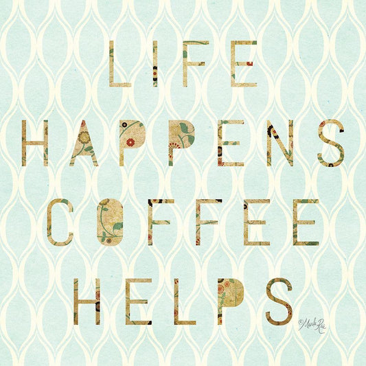 Life Happens - Coffee Helps Black Modern Wood Framed Art Print by Rae, Marla