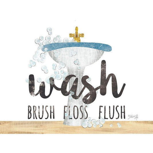 Wash - Brush - Floss - Flush Black Modern Wood Framed Art Print by Rae, Marla