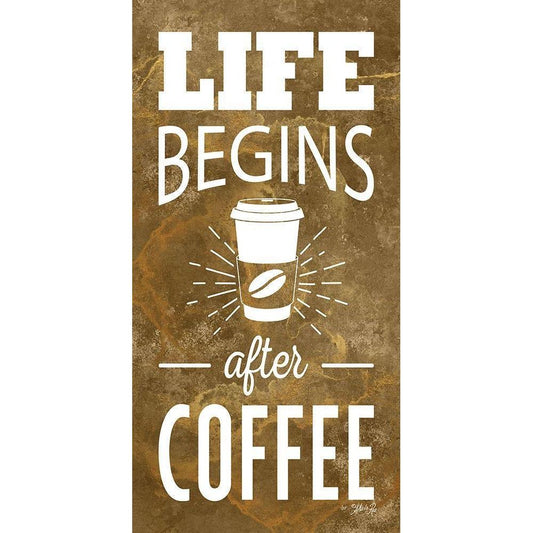 Life Begins After Coffee Black Modern Wood Framed Art Print by Rae, Marla