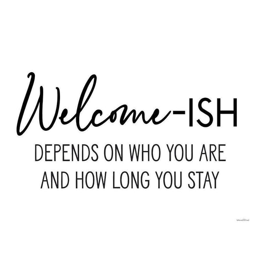 Welcome-ish Black Modern Wood Framed Art Print by Lettered And Lined