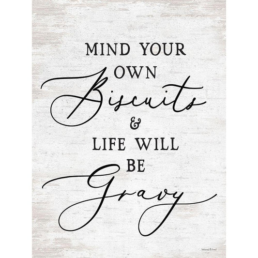 Mind Your Own Biscuits Black Modern Wood Framed Art Print by lettered And lined