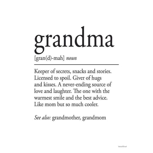 Grandma Definition Black Modern Wood Framed Art Print by Lettered and Lined