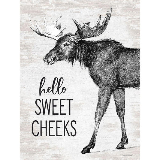 Hello Sweet Cheeks Moose Black Modern Wood Framed Art Print by lettered And lined