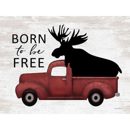 Born to be Free Moose Black Modern Wood Framed Art Print by lettered And lined