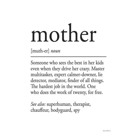 Mother Definition Black Modern Wood Framed Art Print by Lettered and Lined