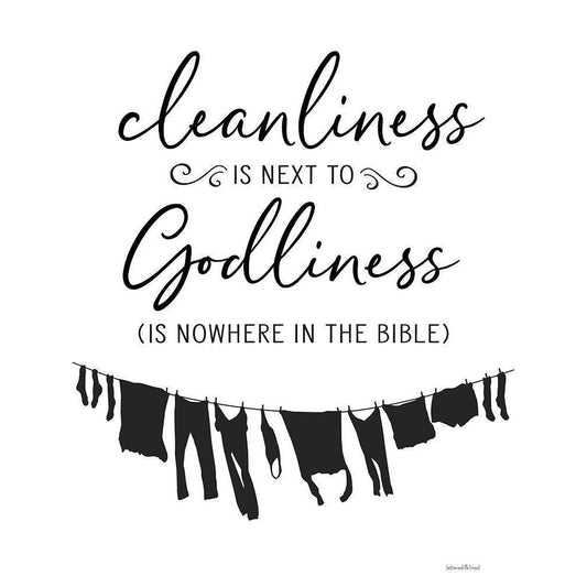Cleanliness is Next to Godliness Black Modern Wood Framed Art Print by lettered And lined