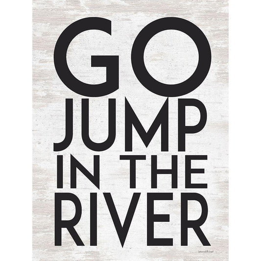 Go Jump in the River Black Modern Wood Framed Art Print by lettered And lined
