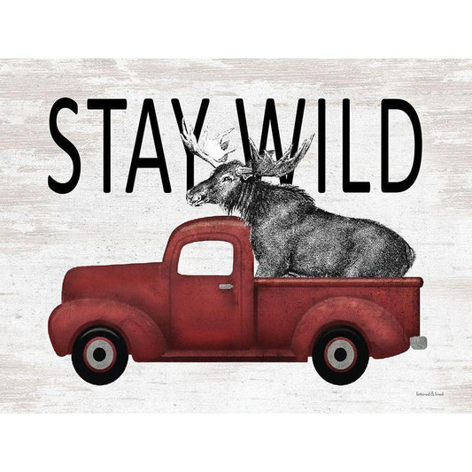 Stay Wild Moose Black Modern Wood Framed Art Print by lettered And lined