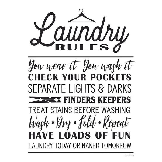 Laundry Rules Black Modern Wood Framed Art Print by lettered And lined