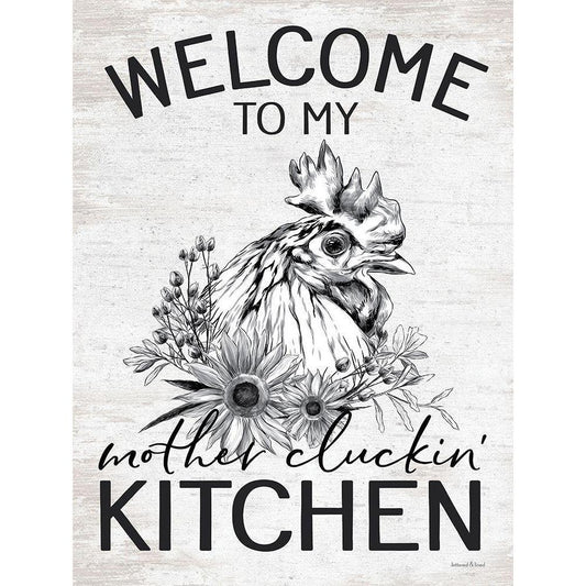 Welcome to My Mother Cluckin Kitchen Black Modern Wood Framed Art Print by lettered And lined