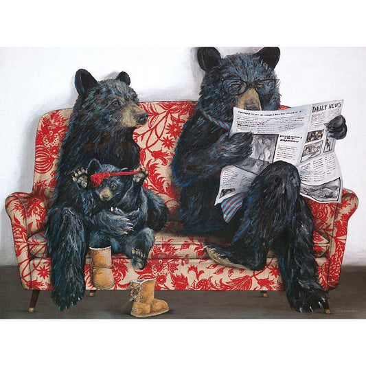 Bear-ly Present Black Modern Wood Framed Art Print by Kamdon Kreations