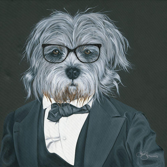 Dog in Suit Black Modern Wood Framed Art Print by Hollihocks Art