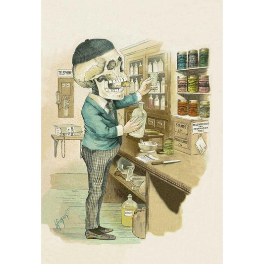 Death Tips a Pint Black Modern Wood Framed Art Print by Frusius