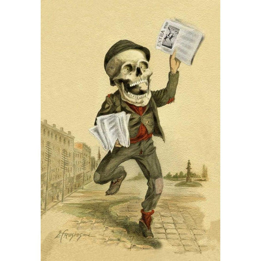 Death Brings the News Black Modern Wood Framed Art Print by Frusius