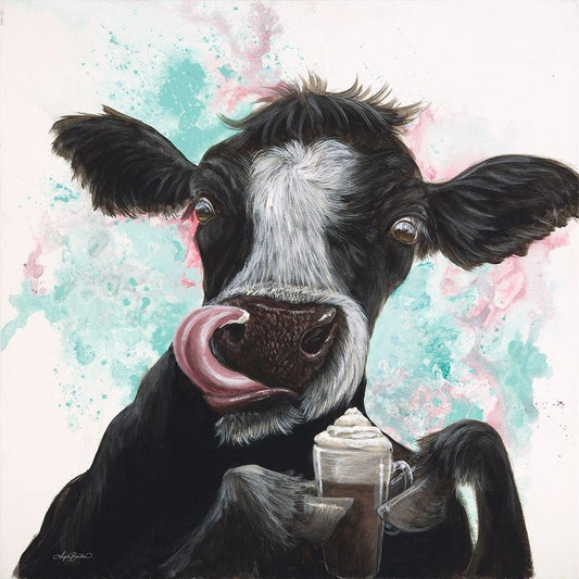 Moo Latte Black Modern Wood Framed Art Print by Bawden, Angela