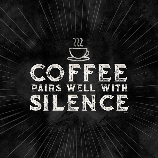 Coffee Humor black II-Coffee and Silence Black Modern Wood Framed Art Print by Reed, Tara