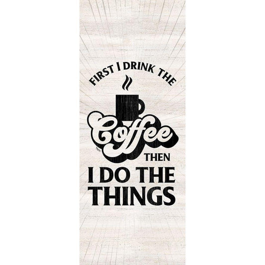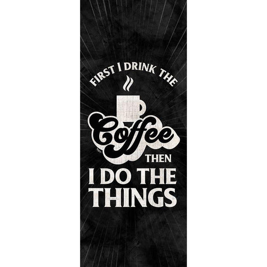 Coffee Humor vertical II-First I Drink Black Modern Wood Framed Art Print by Reed, Tara