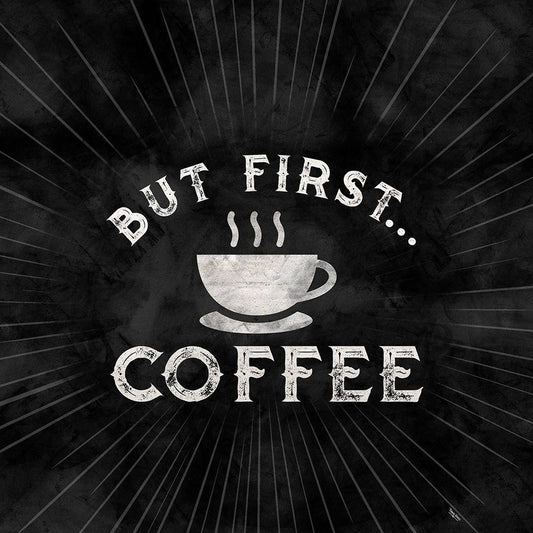 Coffee Humor black I-But First Black Modern Wood Framed Art Print by Reed, Tara