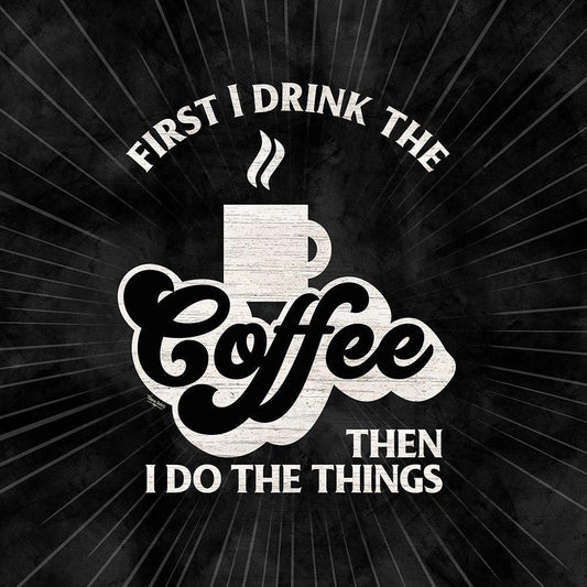Coffee Humor black IV-First I Drink Black Modern Wood Framed Art Print by Reed, Tara