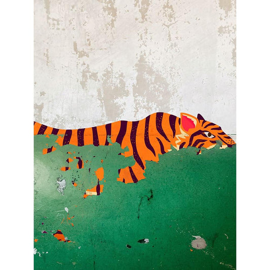 Plaster Tiger Black Modern Wood Framed Art Print by Masterfunk Collective