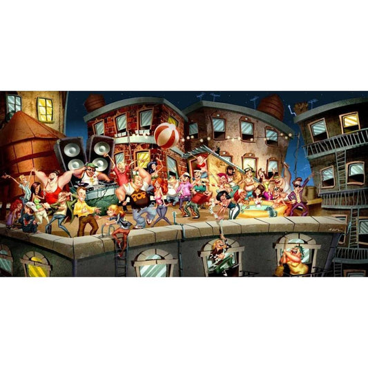 Party on the Roof Black Modern Wood Framed Art Print by Alvez, A. - Perez, A.