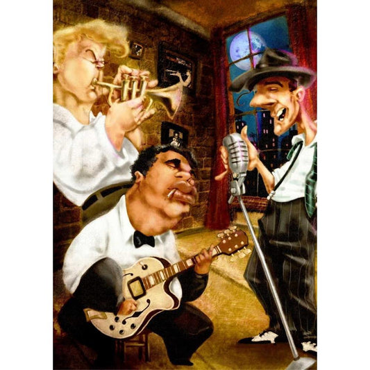 Band Jazz Club Black Modern Wood Framed Art Print by Alvez, A. - Perez, A.