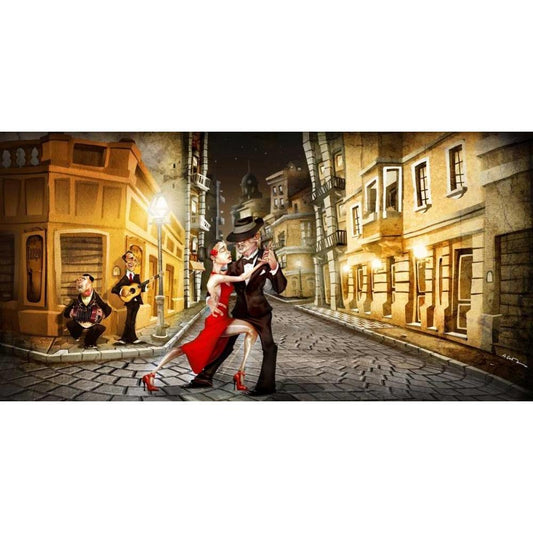 Tango in street Black Modern Wood Framed Art Print by Alvez, A. - Perez, A.