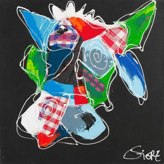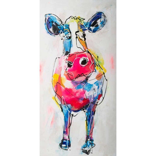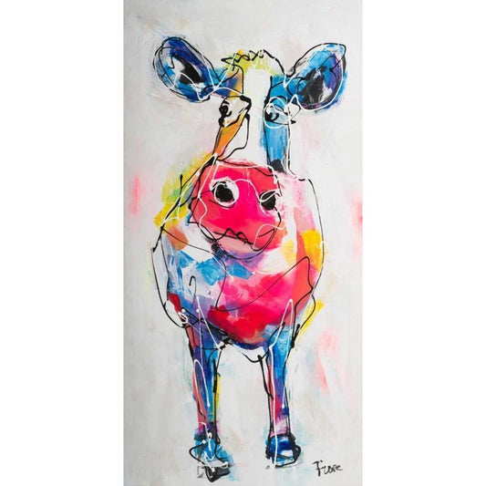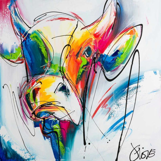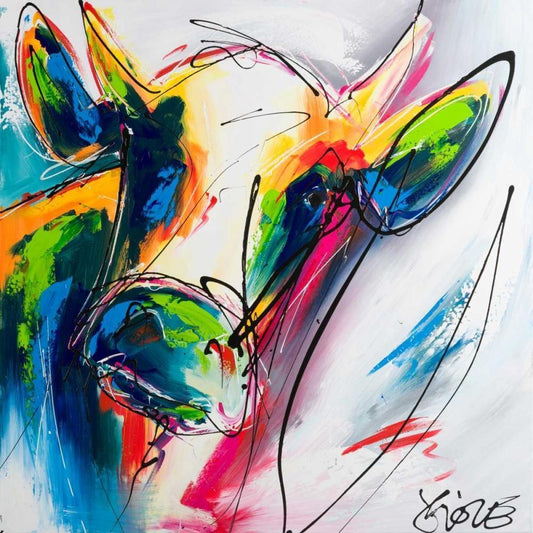 Colourful art cow Black Modern Wood Framed Art Print by Fiore, Art