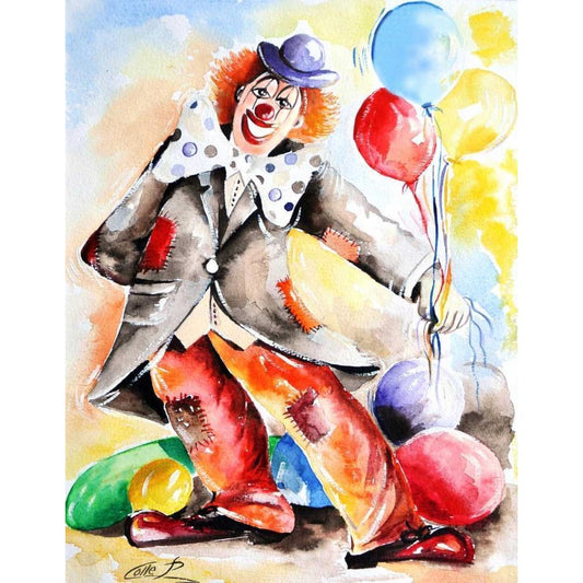 Clown I Black Modern Wood Framed Art Print by Colle, Pasquale